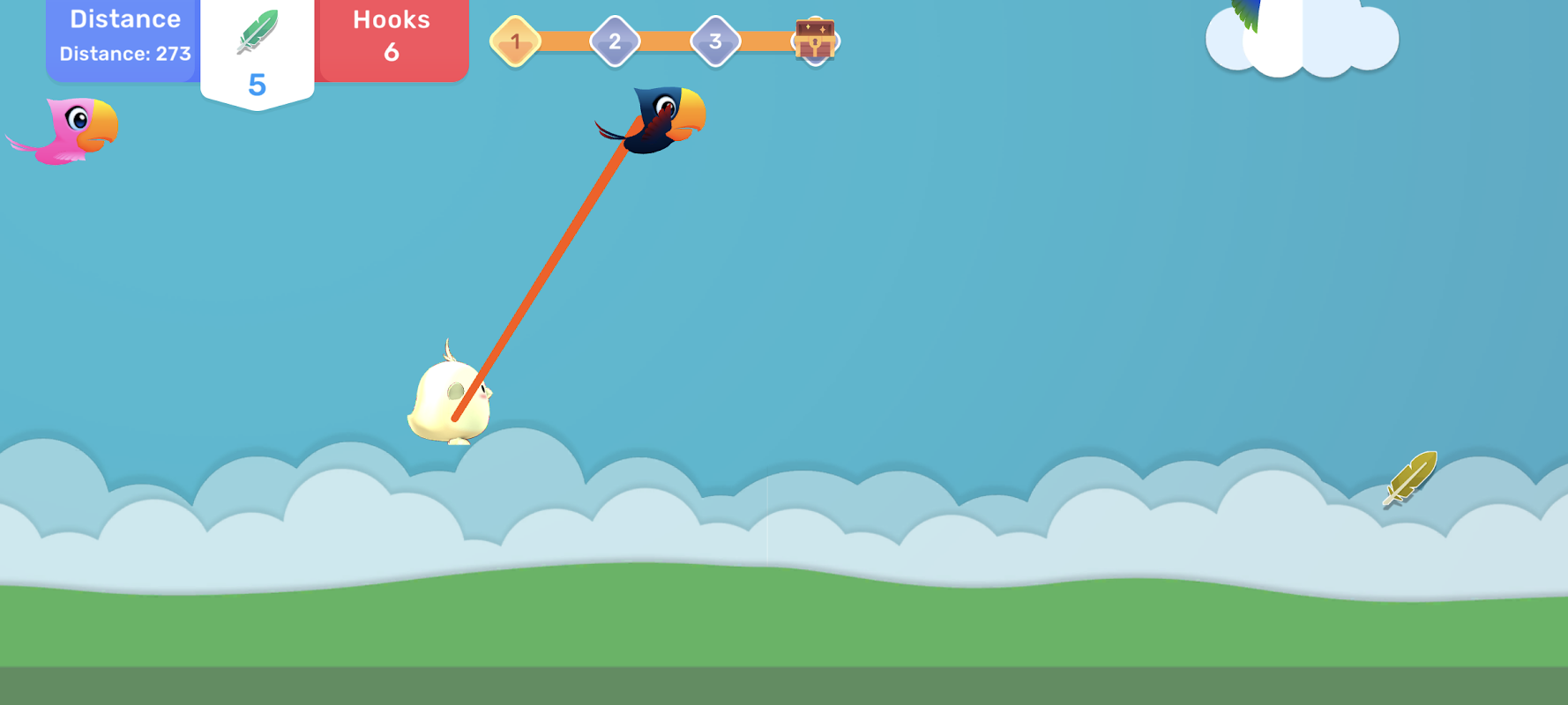 इस सनकी एक स्पर्श भौतिकी खेल में सभी पक्षियों को ले लीजिए। पावर-अप अनलॉक करने और नए पात्रों को इकट्ठा करने के लिए आकाश में ले जाएं और पक्षियों, सितारों और पंखों को हुक करें!