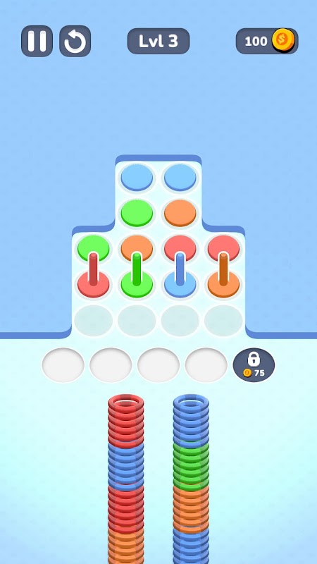 हूप्स लूप एक पहेली गेम है जिसमें आप हूप्स को रंग के अनुसार छांटते हैं। हूप्स को रॉड पर लॉन्च करने के लिए उन्हें टैप करके होल्ड करें और उन्हें उनकी मैचिंग रॉड तक ले जाएँ। प्रत्येक स्तर आपके तर्क और योजना को चुनौती देता है क्योंकि आप हूप्स को सिंगल-कलर रॉड में व्यवस्थित करते हैं।