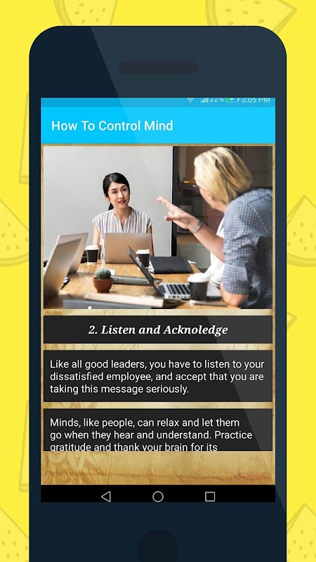 This APP describe benefits of mind control and how we distract ourselves when the negative voice gets too loud.