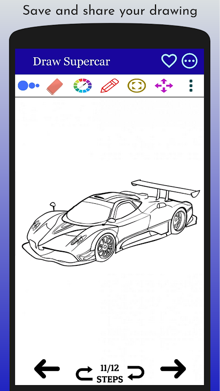 मुफ्त सुपरकार ड्रॉइंग ऐप