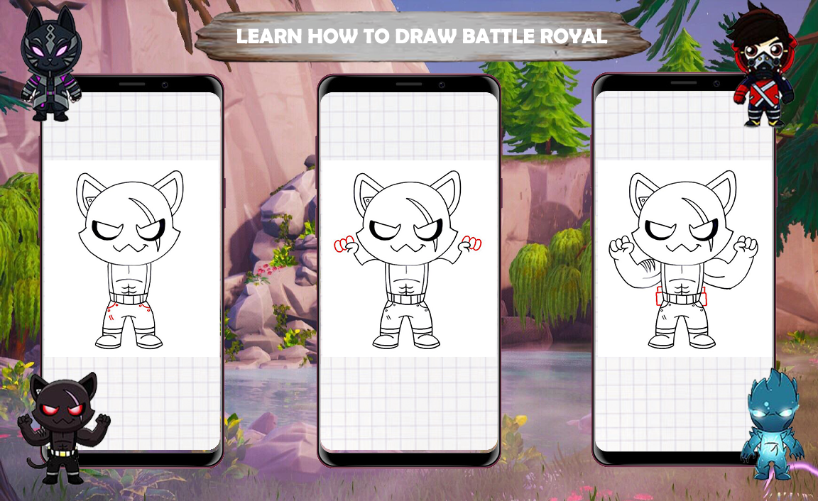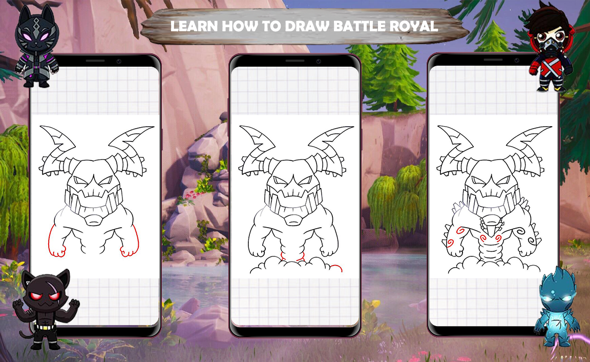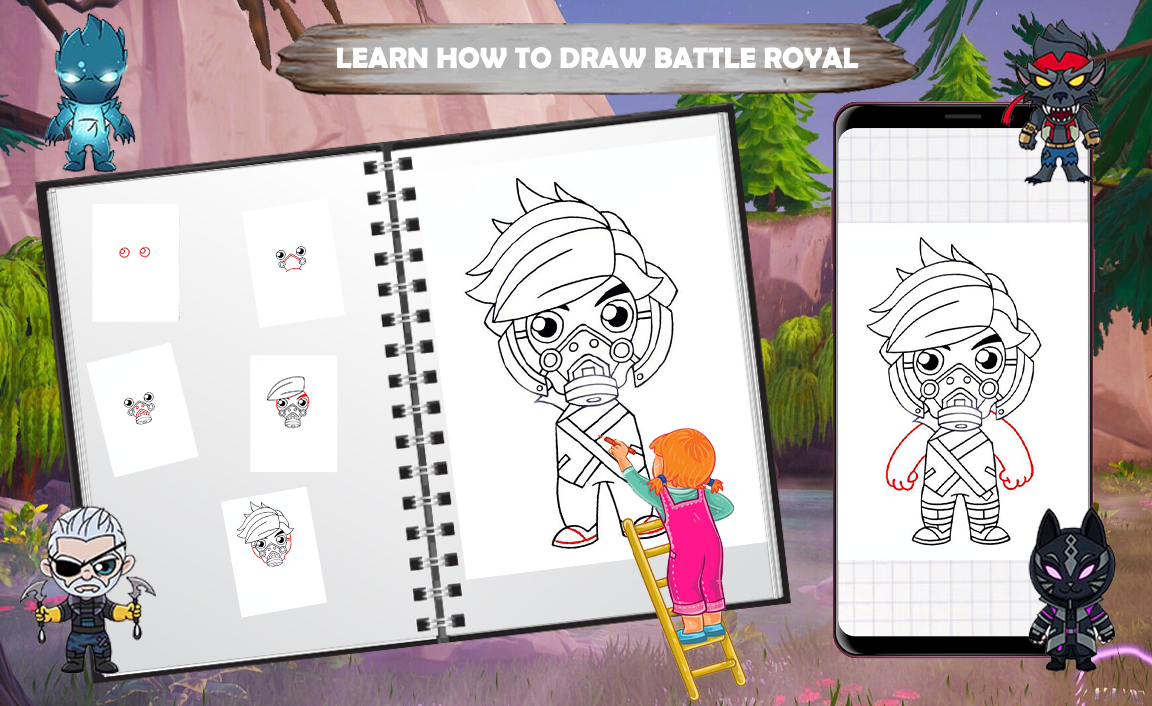 - This app contains dozen of your favorite Battle Royale Characters drawing pages.