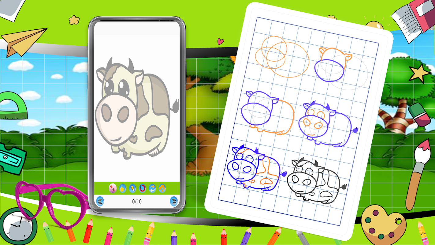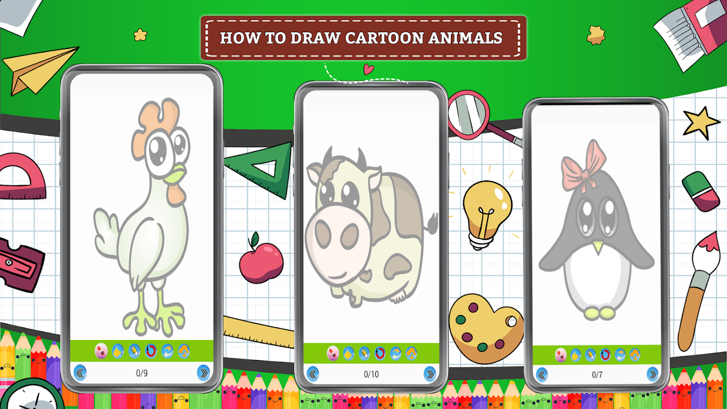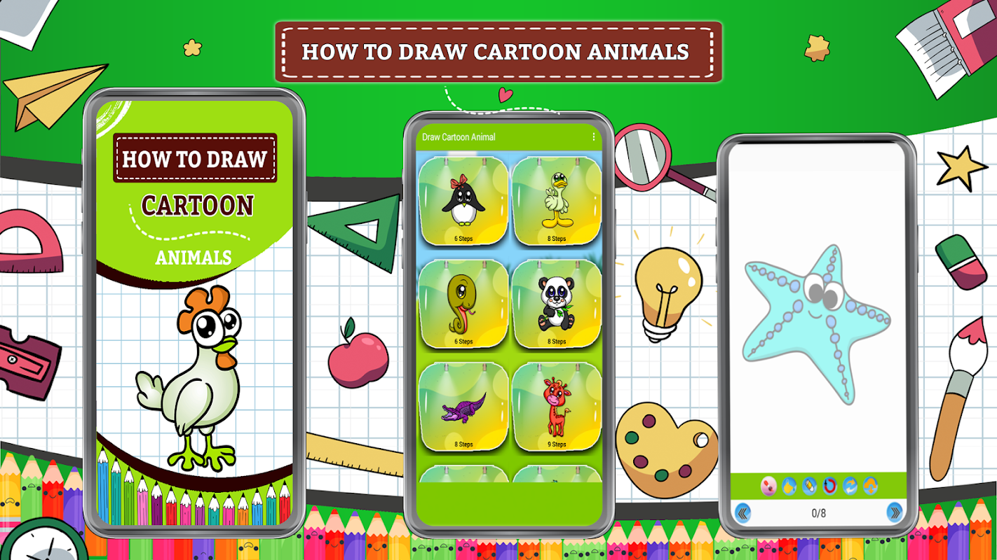Learn how to draw cartoon animals step by step is the most effective app for everybody, who want to draw cartoon animal sketch easily and its completely free. How to draw animals on paper app is a fun activity, includes a large collection of animal images and is best self-learning application for you and your family.