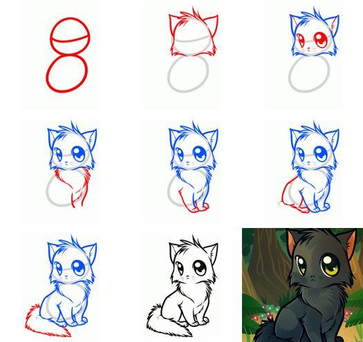How to Draw Cat Easy contains step by step image tutorials and each of them leads to a successful conclusion of your cat drawing! You will easily and confidently learn how to draw a cat step by step!