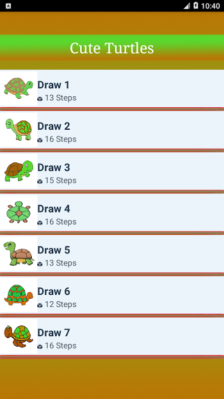 यह एप्लिकेशन आसान ड्राइंग के लिए एक ऐप है क्योंकि यह आपके बच्चों को सिखाता है और आपको ट्यूटोरियल द्वारा विस्तृत तरीके से आसानी से प्यारा कछुओं को कैसे आकर्षित करना सीखने में मदद करता है, हालांकि आपके डिवाइस पर आकर्षित और पेंट करने की संभावना के साथ यह ड्राइंग सीखने के लिए मजेदार गतिविधि है बच्चे।