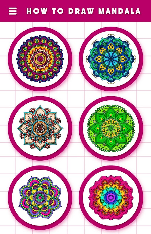How to draw mandalas for mandala drawing images are provided beautifully in this app.