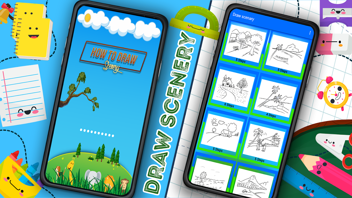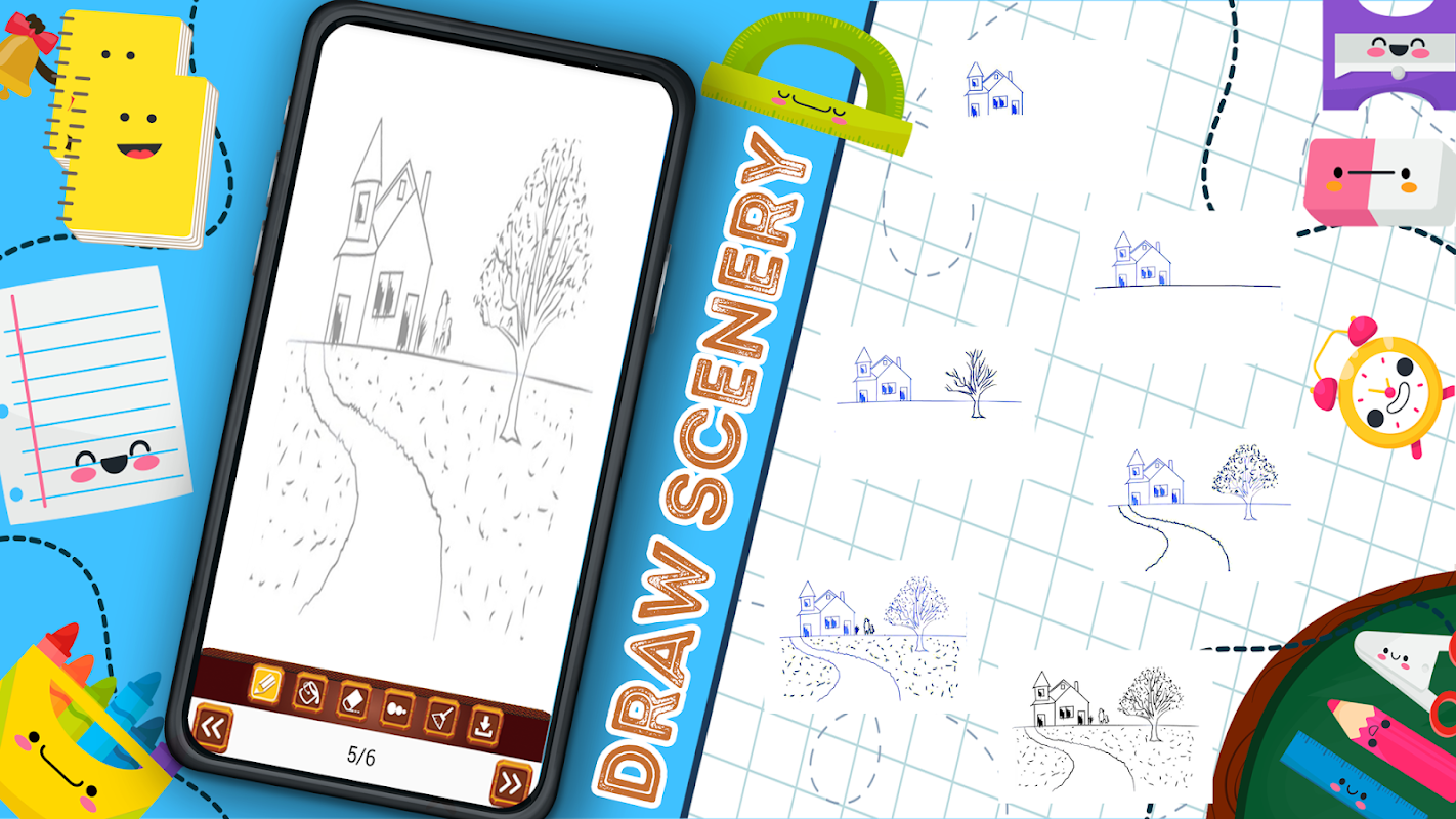 How to Draw Scenery Step by Step will teach you how to draw different types of scenery and create your wonderful drawing. Draw Scenery app contain best collections of sceneries shapes, its very easy to use and learn very quickly.