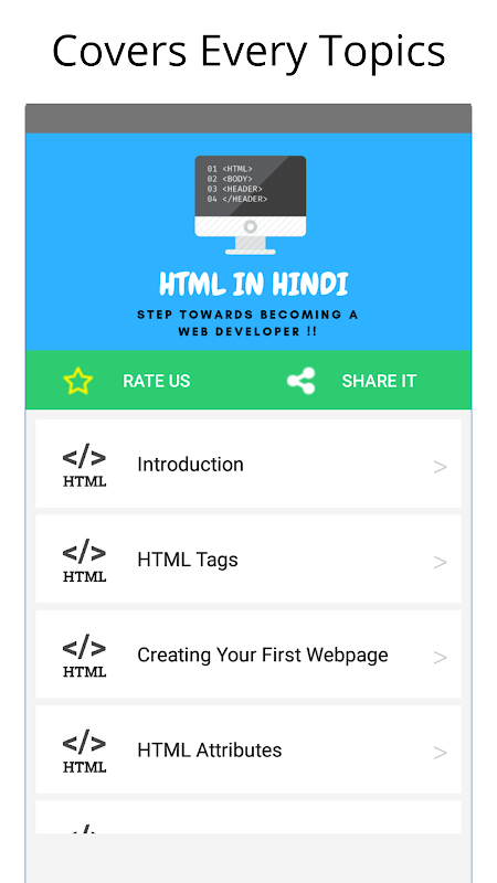 HTML in Hindi - Learn HTML Programming Offline App के पुराने संस्करण