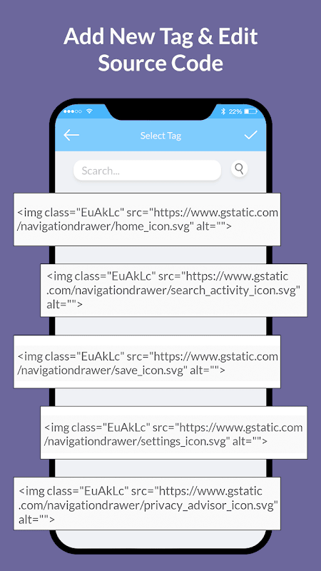 ऐप एचटीएमएल व्यू, सीएसएस व्यू, एचटीएमएल एडिटर, वेब एडिटर और डेस्कटॉप व्यू फंक्शन देता है। आप आसानी से पेज और टैग को संपादित कर सकते हैं। एक टैप पर आप वेब एलिमेंट पर जा सकते हैं, कोड देख सकते हैं और संपादित कर सकते हैं। सीधे कोड लाइन, टैग और बहुत कुछ खोज सकते हैं। ऐप वेबपृष्ठों के लिए कोड करना सीखना आसान बनाता है, और आप स्वयं को कोड कर सकते हैं।