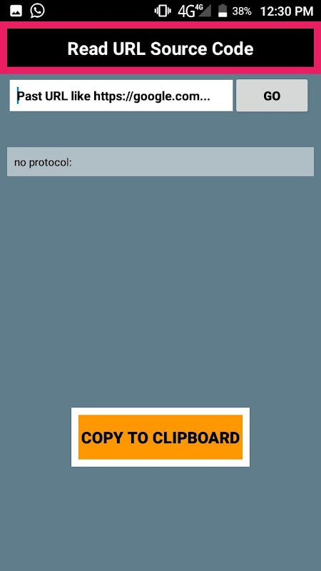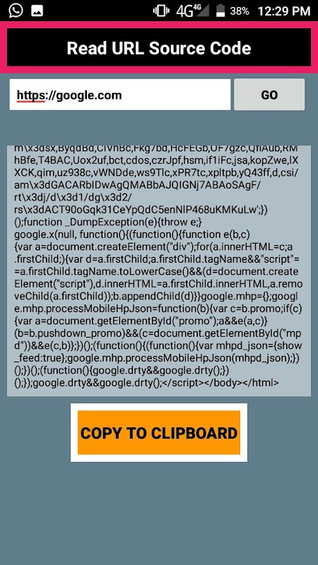 This application created by hyper studios and this work is read URL source code HTML code and user can copy source code easily only two steps first step enter your URL second step press go button now you can see website source code and copy to clipboard so easily.