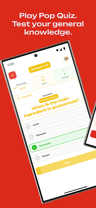 - पॉप क्विज़: सामान्य ज्ञान, सामान्य ज्ञान और मज़ेदार तथ्यों जैसे विभिन्न विषयों पर अपने ज्ञान का परीक्षण करें. प्रतिस्पर्धी मुकाबलों में खुद को चुनौती दें या अपने दोस्तों से प्रश्नोत्तरी करें.