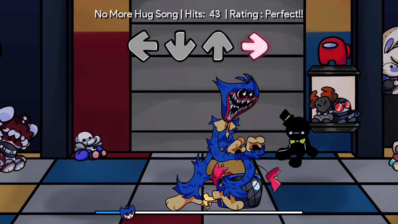 This game works perfectly offline, You can play it using four buttons to create your own unique hit to the music of playtime Huggy Wuggy FNF Mod Character.