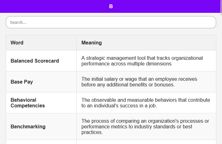 टर्म कवरेज: ए से जेड तक वर्णानुक्रम में व्यवस्थित एचआरएम शब्दों के विशाल संग्रह का अन्वेषण करें, जो क्षेत्र का व्यापक कवरेज प्रदान करता है।