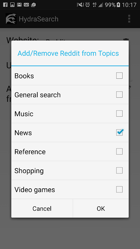 * Long press a topic to add/remove websites