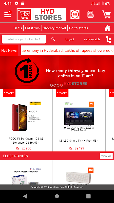 यदि आप HYDERABAD, तेलंगाना में रहते हैं और किसी भी ऑनलाइन शॉपिंग वेबसाइट या ऐप में सर्वोत्तम दैनिक सौदों और सर्वोत्तम छूट की तलाश कर रहे हैं तो HYDSTORES इसका जवाब है। विभिन्न एप्लिकेशन आपको विभिन्न भुगतान विधियों का उपयोग करके भुगतान करने, डिलीवरी पर नकद भुगतान करने या अपने क्रेडिट कार्ड का उपयोग करके ऑनलाइन भुगतान करने की अनुमति देता है। HYDSTORES एक निःशुल्क रिटर्न पॉलिसी भी प्रदान करता है।