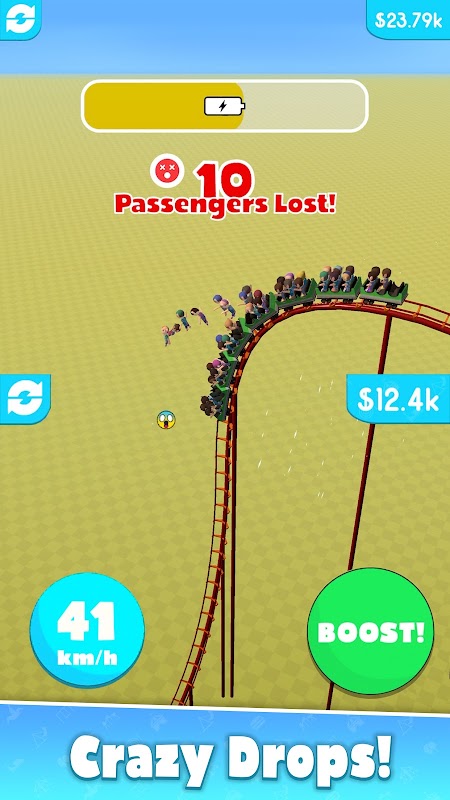 अपनी गाड़ी को अपग्रेड करें ताकि आप सैकड़ों यात्रियों को एक रोमांचक रोलर कोस्टर की सवारी पर ले जा सकें!