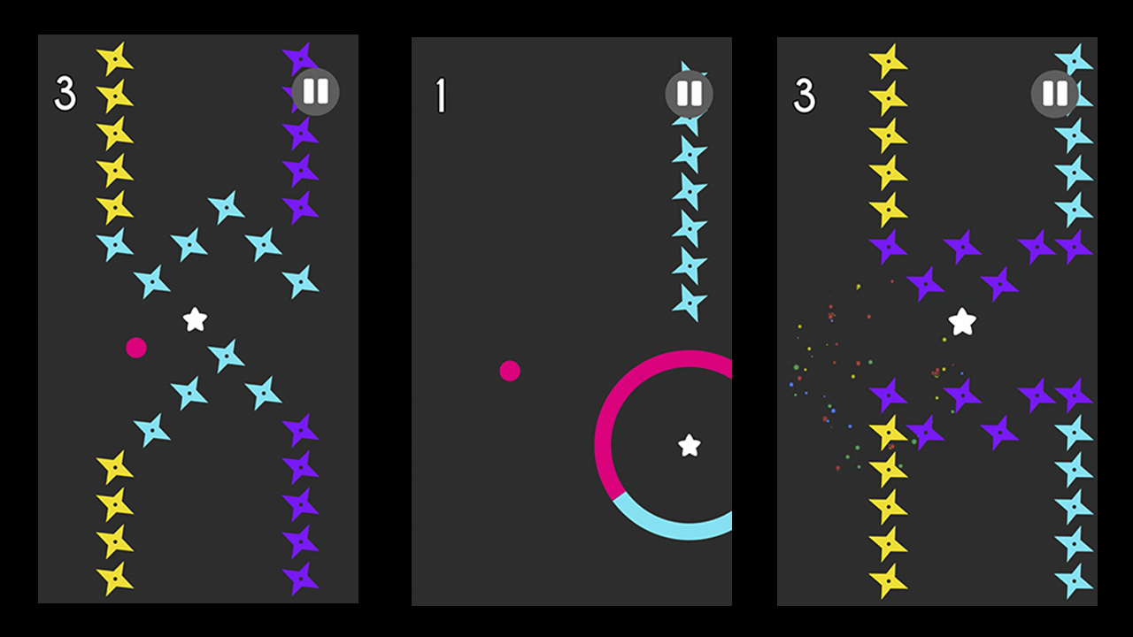 बाधा के माध्यम से ध्यान से टैप करें, आपकी गेंद कुछ पावरअप के साथ रंग स्विच करेंगे।