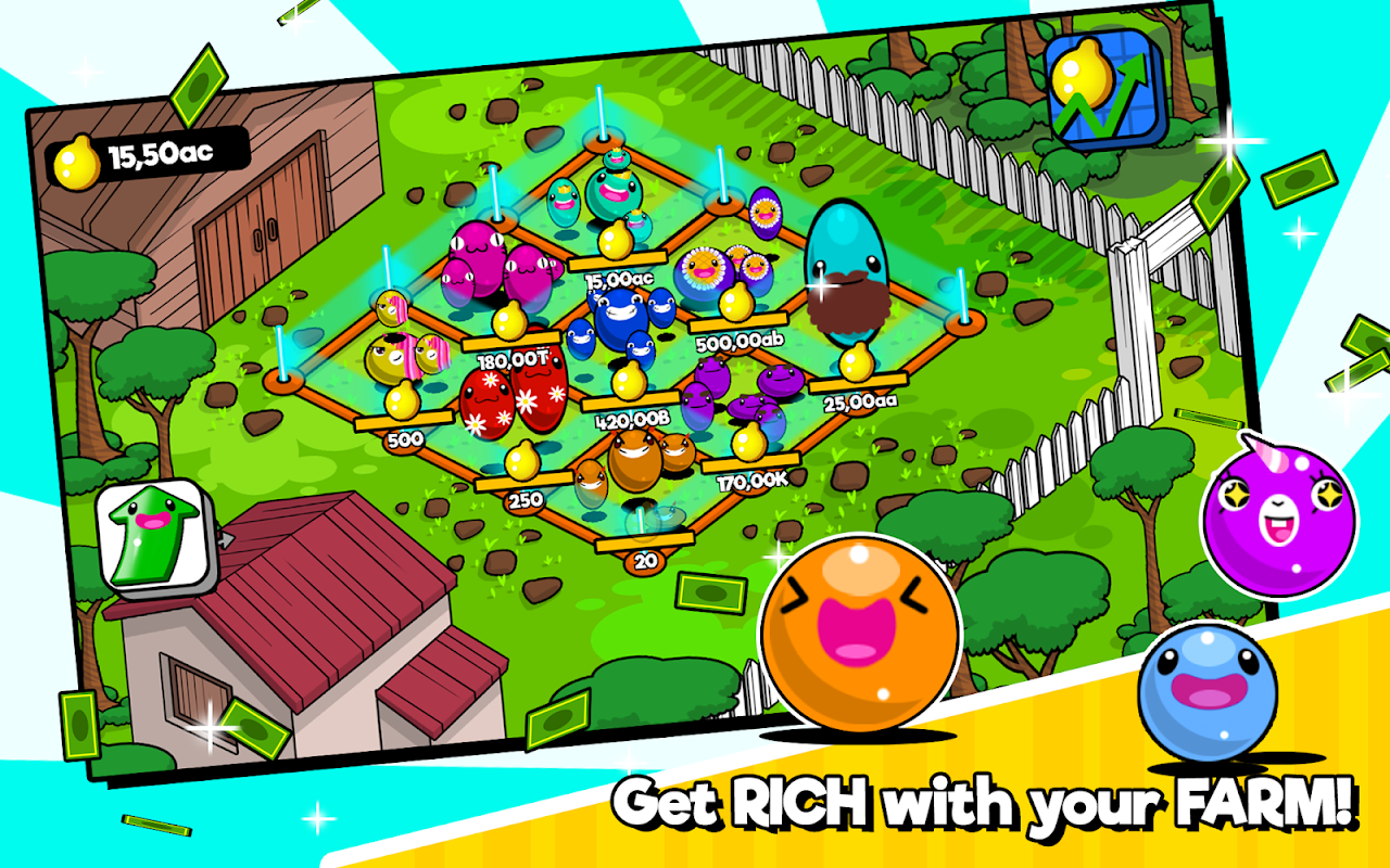 खेतों को स्वचालित करें और स्लाइम टाइकून बनें। निष्क्रिय लाभ का प्रबंधन करें। टैप करें, क्लिक करें, फसल काटें!