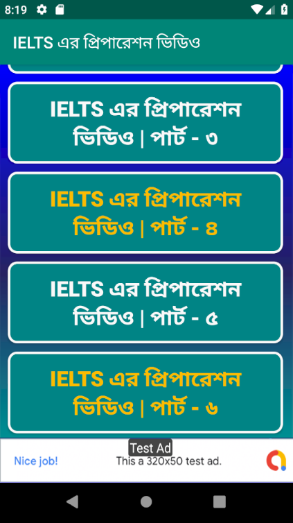 আর আমরা এই অ্যাপে ইউটিউব থেকে বাছাইকরে IELTS প্রস্তুতি ও ভোকাবুলারির ভিডিও একত্রিত করে অ্যাপটি তৈরী করেছি যাতে করে আপনি সহযেই অ্যাপটি চালূ করে IELTS এর জন্য প্রস্তুতি নিতে পারেন।