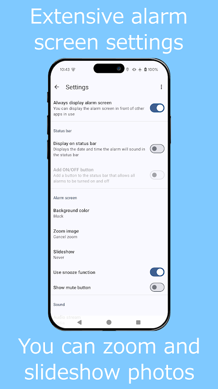 अलार्म बजने पर सूचनाएँ देने के लिए सूचनाओं का उपयोग किया जाता है।