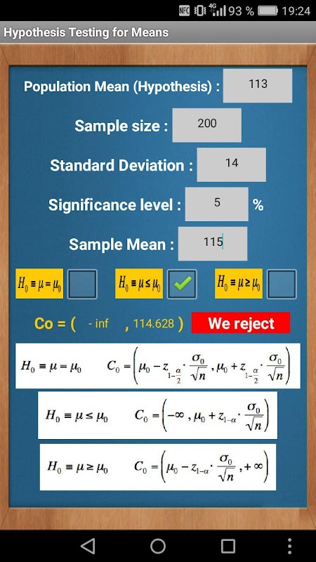 सामान्य वितरण कैलक्यूलेटर, विश्वास हाइपोथीसिस टेस्ट अंतराल