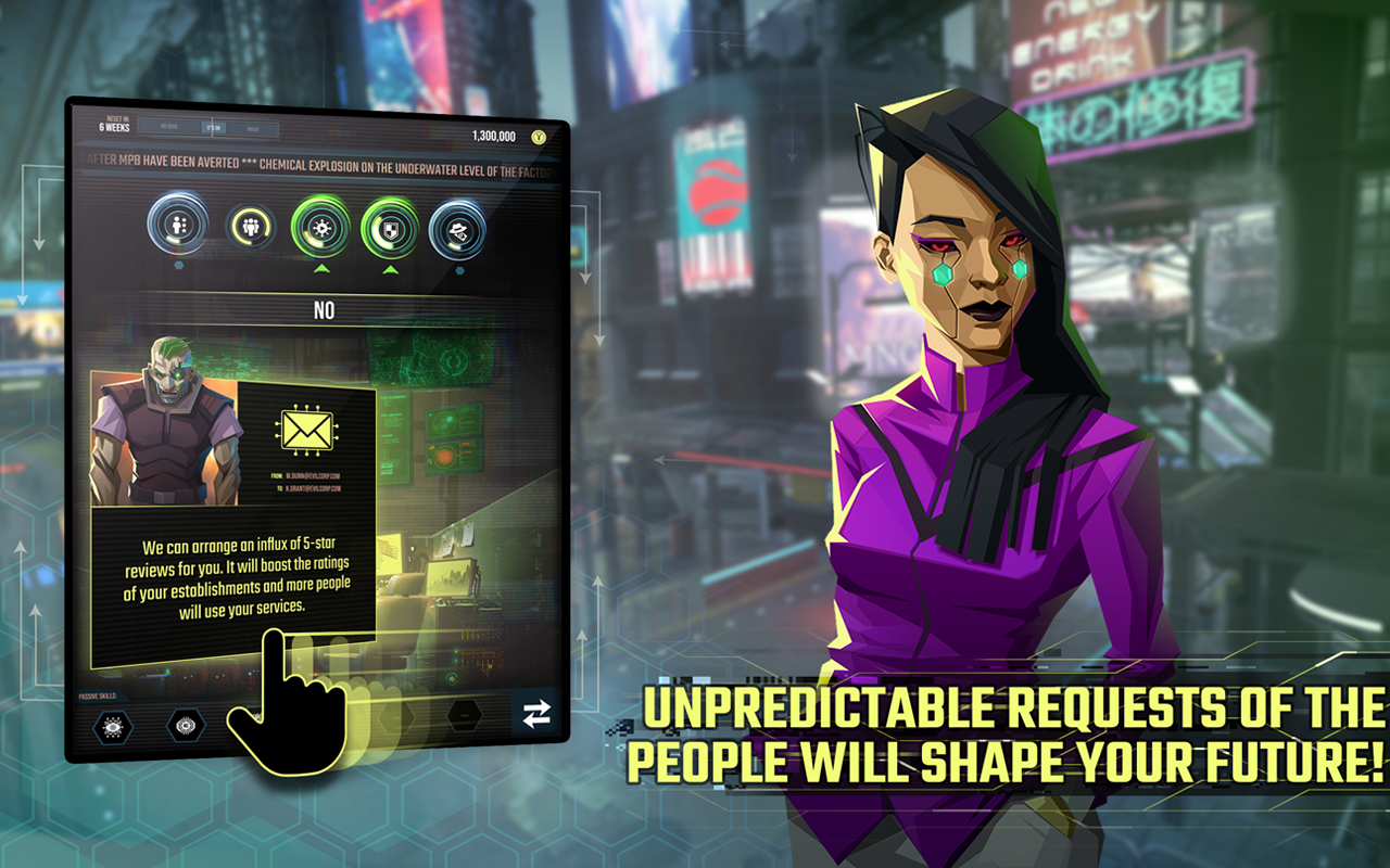 इस साइबरपंक दुनिया में प्रौद्योगिकी उन्नति के उच्चतम स्तर पर पहुंच गई है और सभी प्रकार के साइबर-प्रत्यारोपण और आनुवंशिक संशोधन आम हैं. अधिकांश लोगों ने जीवित, प्राकृतिक पौधे या जानवर नहीं देखे हैं. समुद्र के बीच में स्थापित एक स्वतंत्र शहर-राज्य के नागरिकों का जीवन - "बेबीलोन 6" - आपके निर्णयों पर निर्भर करता है.