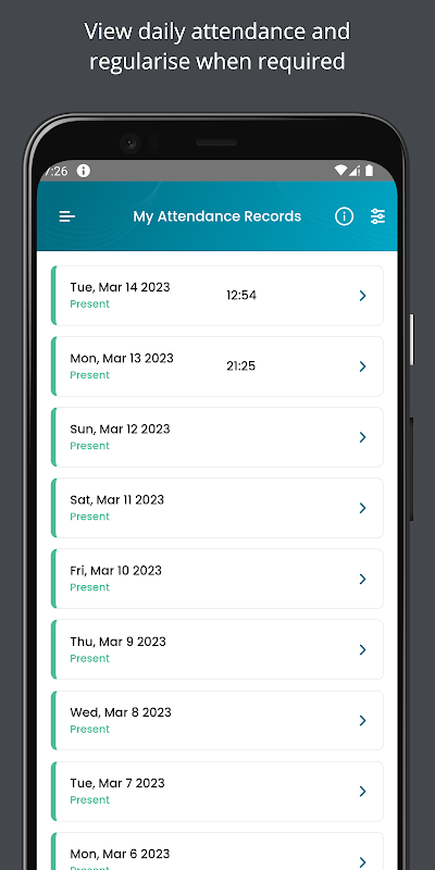 इनबिल्ट अटेंडेंस ऐप आपके कर्मचारियों की उंगलियों पर छुट्टी और उपस्थिति प्रबंधन लाता है।