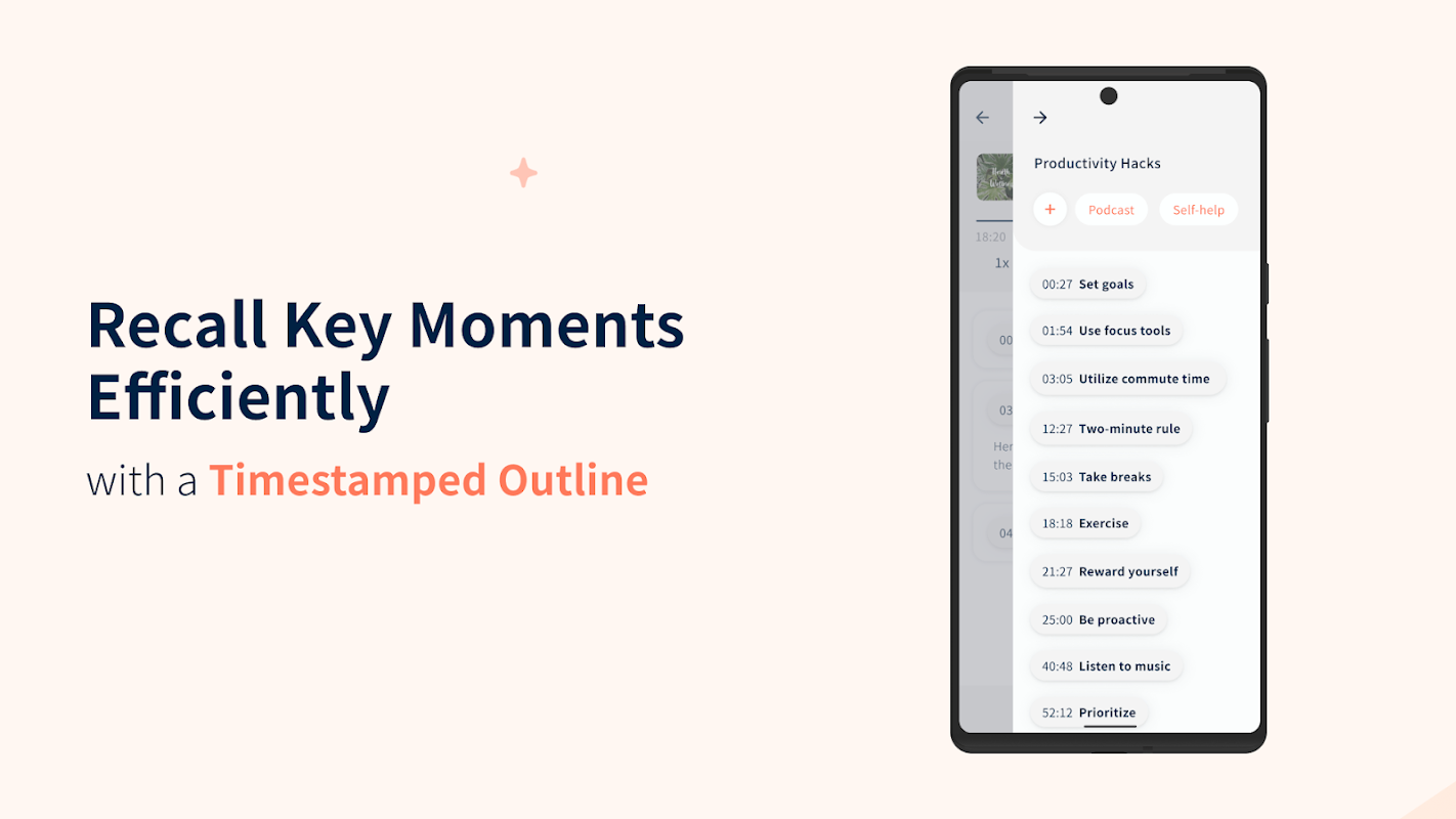 - एक एपिसोड में तुरंत टाइम-स्टैम्प्ड आउटलाइन की समीक्षा करें