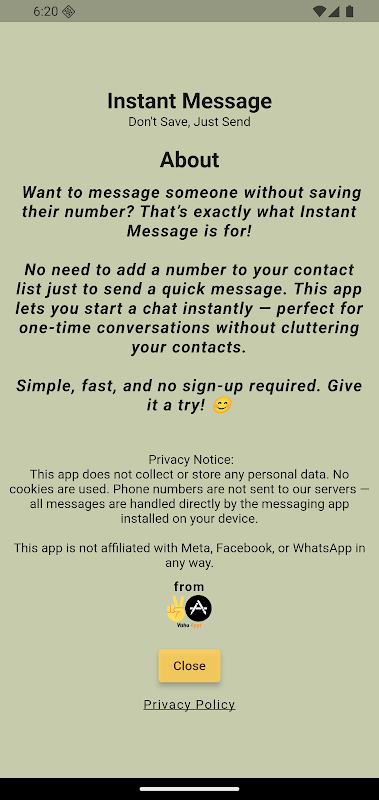 अस्वीकरण: यह ऐप एक स्वतंत्र टूल है और किसी भी मैसेजिंग प्लेटफ़ॉर्म से संबद्ध नहीं है।