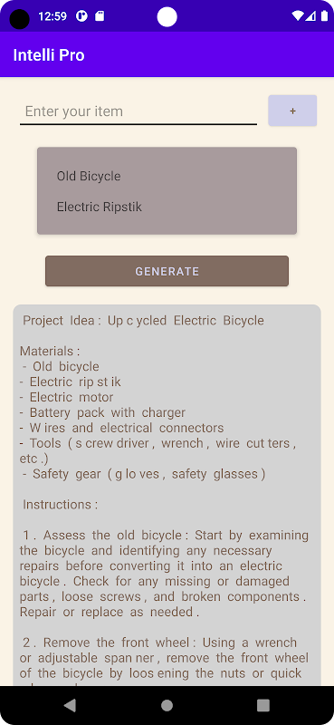 त्वरित विचार: एक टैप से, हमारा एआई-संचालित इंजन आपको एक अद्वितीय परियोजना विचार प्रदान करेगा जो आपके द्वारा सूचीबद्ध वस्तुओं का उपयोग करता है।