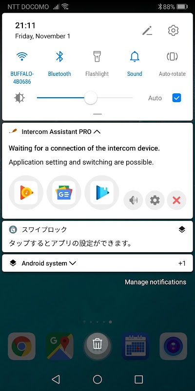 バイク用インカムのブルートゥース接続を検知して、同時使用するアプリと画面を制御します。