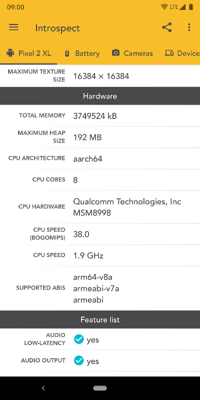 आसानी से अपने डिवाइस के सभी गुणों को खोजने के। डेवलपर्स के लिए उपयोगी!