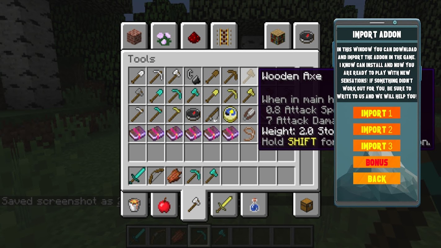 This addon will add to your world a huge amount of interesting and useful sorting wang for your MCPEl! This addon will make your game much nicer and more convenient!