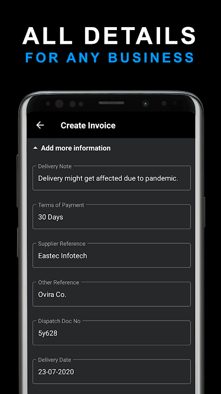 You can add remarks, due date, delivery information as well in your gst invoice.