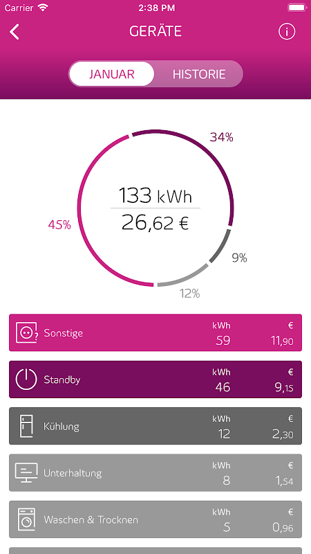 अपनी ऊर्जा खपत पर हमेशा नज़र रखें – सरलता से, पारदर्शिता से और स्पष्ट रूप से। iONA के साथ, आप देख सकते हैं कि आप वर्तमान में कितनी बिजली का उपयोग कर रहे हैं और आपके व्यवहार का आपके ऊर्जा बिलों पर क्या प्रभाव पड़ता है।