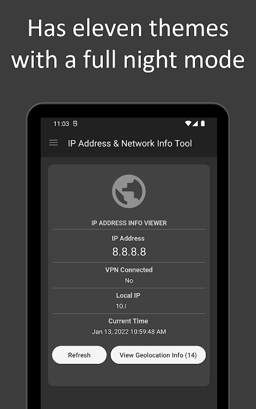 If you have wanted to know your IP address, look no further. Presenting 'IP Address & Network Info tool', a multi tool for viewing IP Address, Geo location and Network Info. The app is built for Android Mobile devices from scratch.