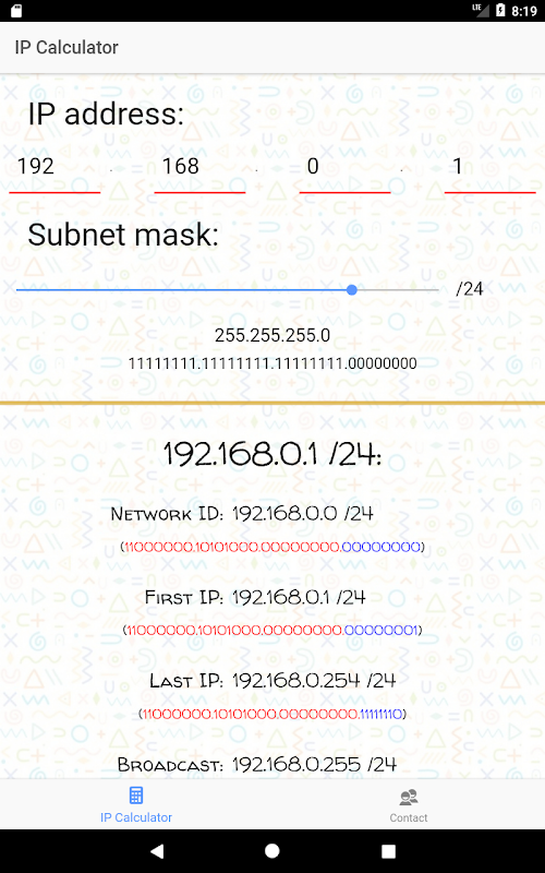 Convenient IP Calculator provides you with a easy way to help you perform IP calculation automatically. After simply providing an IP address and sliding a subnet mask, this app will help you calculate