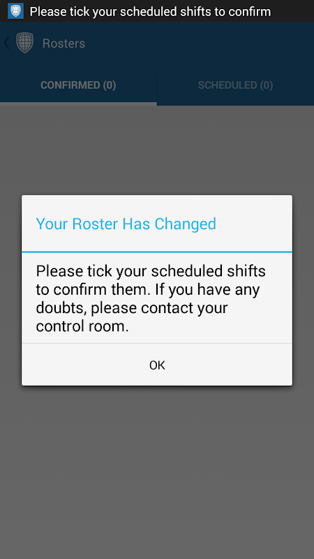 Once you are logged in to the app on your Smartphone you will receive notifications of roster changes and be able to confirm or decline your scheduled shifts without speaking to the control room, it will also show you a map of where to find your shifts and help you to call or email the control room if you need to.