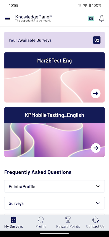 किसी भी समय नॉलेजपैनल सर्वेक्षणों का उत्तर दें और केवल कुछ टैप से पुरस्कार प्राप्त करें।