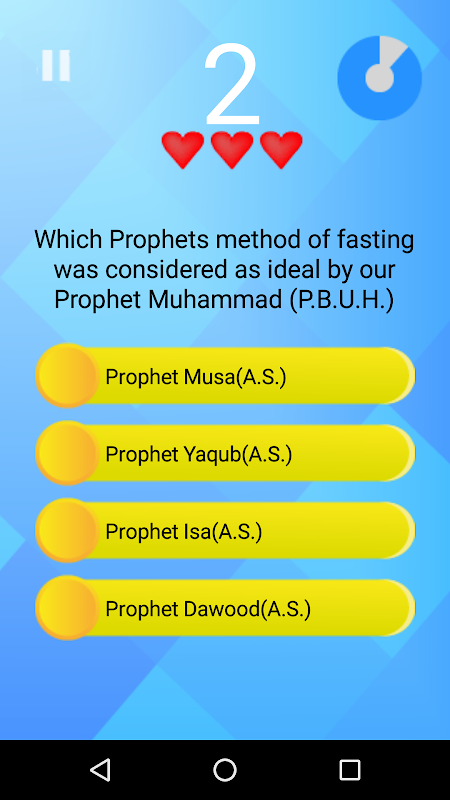 This Islamic Quiz app is developed to help one increase his knowledge of Islam in a simple yet interesting way. Beat the timer and try to complete all the questions before you run out of lives!