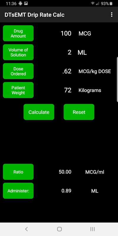 तरल पदार्थ की मात्रा में मिलीग्राम, एमसीजी, ग्राम या इकाइयों में एक दवा की मात्रा जोड़ें, आदेशित खुराक और वॉइला का चयन करें! उस खुराक को देने के लिए आवश्यक एमएल / घंटा प्रदर्शित किया जाता है। सभी मापदंडों को जलसेक से पहले सत्यापित किया जाना चाहिए! हालाँकि, यदि आप गलती से एक गलत पैरामीटर दर्ज करते हैं, तो आप डेटा के प्रत्येक टुकड़े को फिर से दर्ज किए बिना इसे सही करने के लिए बैक-स्क्रीन कर सकते हैं।