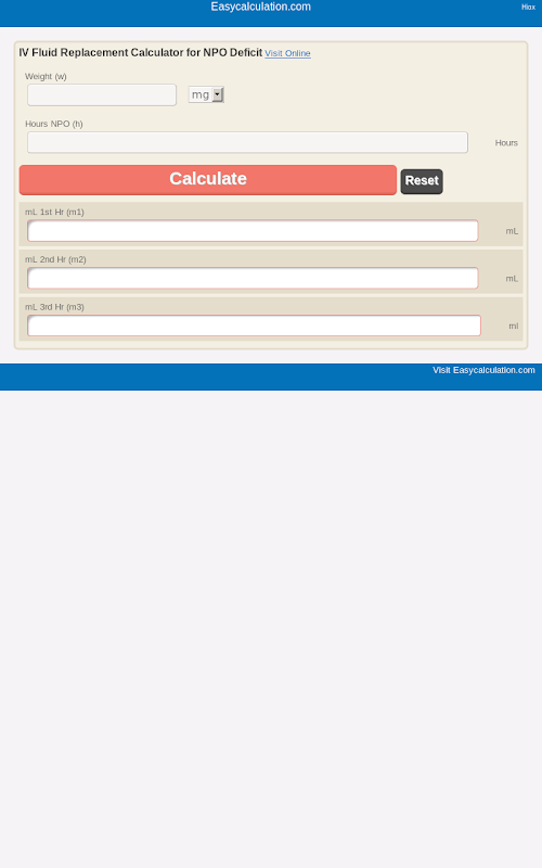 एनपीओ घाटे के लिए अंतःशिरा तरल प्रतिस्थापन की गणना करने के लिए
