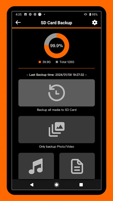 इस एप्लिकेशन का उपयोग एंड्रॉइड डिवाइस पर वीडियो, फोटो, ऑडियो और दस्तावेज़ आइटम जैसे व्यक्तिगत मीडिया आइटम को बाहरी j5 कार्ड रीडर पर बैकअप करने के लिए किया जा सकता है। स्मार्ट बैकअप प्रोग्राम प्रत्येक बैकअप प्रक्रिया के दौरान स्वचालित रूप से नए बैकअप आइटम की खोज कर सकता है। बैकअप विकल्पों में, बैकअप मीडिया आइटम को निर्माण तिथि और श्रेणी के आधार पर क्रमबद्ध किया जा सकता है और विभिन्न उपनिर्देशिकाओं में बैकअप किया जा सकता है।