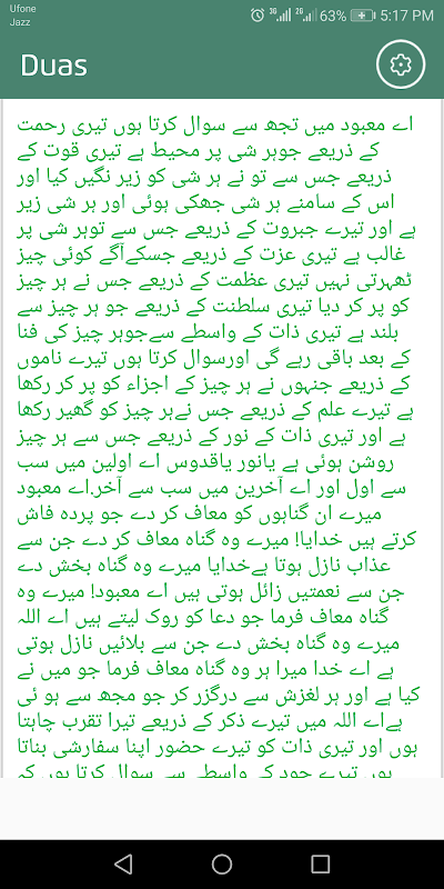 Search for any dua and ziarat at anywhere in the application and it provides you with the best possible results for your search term. You can also use voice actions to search for any supplications.