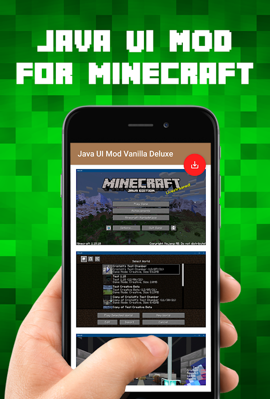 नोट: Minecraft PE के लिए यह जावा यूआई मॉड फैनमेड हैं, हम एक आधिकारिक मिनीक्राफ्ट उत्पाद नहीं हैं। MOJANG द्वारा स्वीकृत या संबद्ध नहीं है।