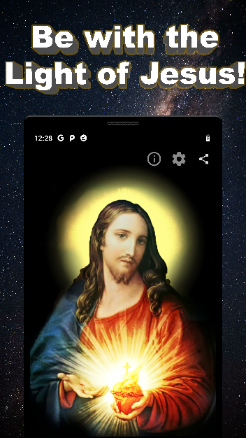 The app uses a flashlight which gives a divine presence with a piece of soft music in the background, that gives the radiance of Jesus Christ.