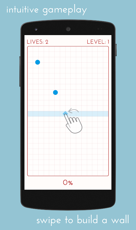 एक दीवार बनाने के लिए स्वाइप करें, याद रखें कि उछलती गेंदों से बचने के लिए, गेम बोर्ड के कम से कम 75% भाग को अगले स्तर पर जाने के लिए भरें।