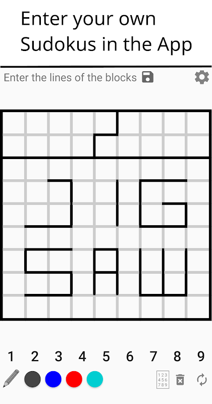 - अपने खुद के सुडोकु दर्ज करें और उन्हें अनुप्रयोग में हल