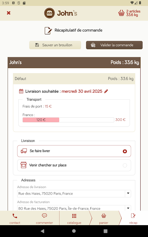 समर्पित जॉन एप्लिकेशन के साथ अपने पेशेवर ग्राहकों के लिए ऑर्डर लेना आसान बनाएं। प्रत्येक ग्राहक के लिए विशेष कीमतों के साथ 100% वैयक्तिकृत डिजिटल कैटलॉग प्रदान करें। अपने प्रस्ताव और प्रचार का प्रसार करें।