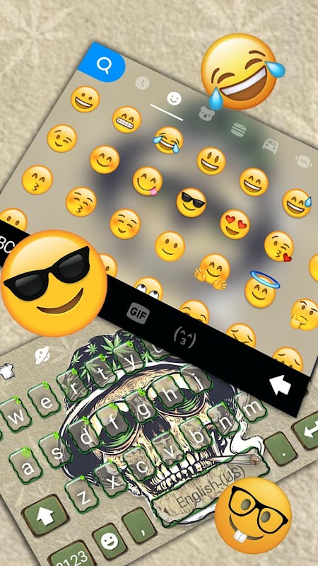 💚नया नि:शुल्क Joint Smoke Skull Warrior कीबोर्ड थीम आपके कीबोर्ड एवं टेक्ट इनपुट को सचमुच नया लुक प्रदान करेगा, और आपके एंड्रॉइड डिवाइस के कीबोर्ड को सुंदर, प्यारा और विशिष्ट बनाएगा।