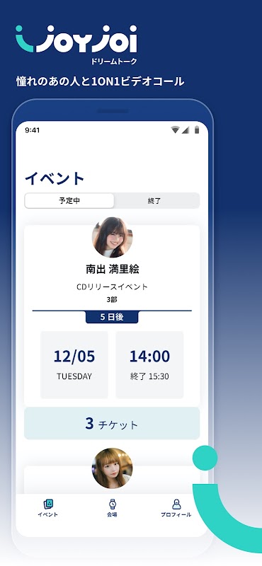 Joy×Joi-オンラインでドリームトーク- はあこがれのあの人とリアルタイムで1 ON 1 ビデオコールができるオンライントークサービスです。リアルでのイベントとは異なり、オンラインなため、スマートフォンさえあればどこにいてもあこがれのあの人と二人きりでビデオコールができます。オンラインならではの二人きりの体験を皆様にお届けします。